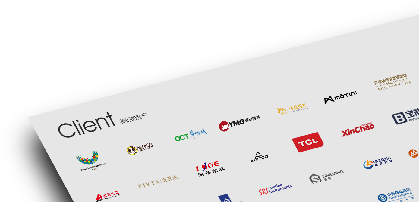 我們的客戶來自各行各業(yè),為了共同目標,我們在工作上密切配合,從創(chuàng)業(yè)型小企業(yè)到知名品牌,感謝他們對我們的高要求,感謝他們從不同領域給我們帶來的挑戰(zhàn),讓我們激情的團隊有機會用頭腦與智慧不斷的給客戶帶來驚喜。